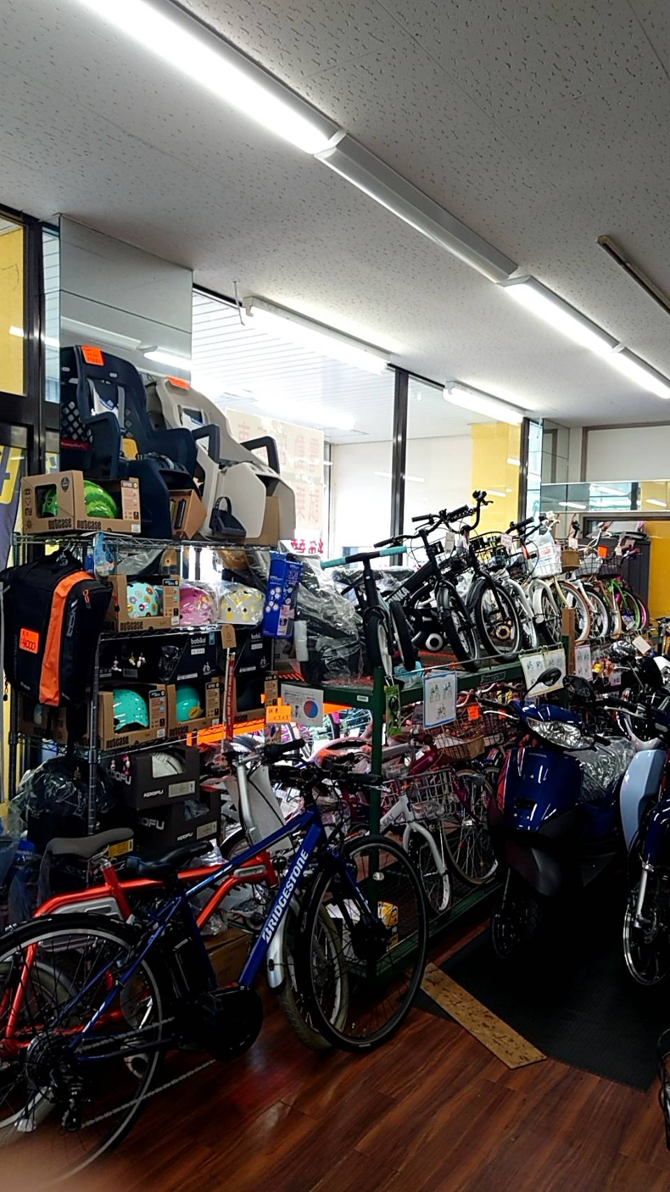 幼児車からスポーツ車、電動自転車、原動機付自転車、リサイクル自転車まで幅広く取り扱っております。また、取り扱いブランドも多く揃えております。